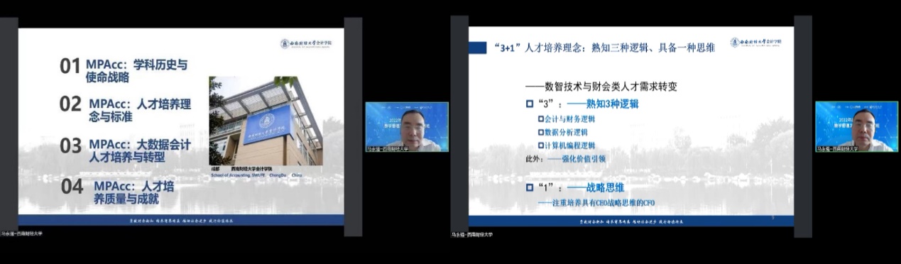 西南财经大学365英国上市公司院长马永强教授做了“数智时代下MPAcc人才培养转型:西财的思考与实践”的主题分享。马永强教授指出,培养方案的制定基础应该是:学校讲授给学生的,是学生在学校以外的社会中不能倚靠自学所获的知识。同时,他提出了“3+1”人才培养理念:熟知“三种逻辑”、具备“一种思维”。“三种逻辑”是指会计与财务逻辑、数据分析逻辑、计算机编程逻辑,“一种思维”即战略思维。该理念对于各个高校的人才培养具有一定的指导意义。