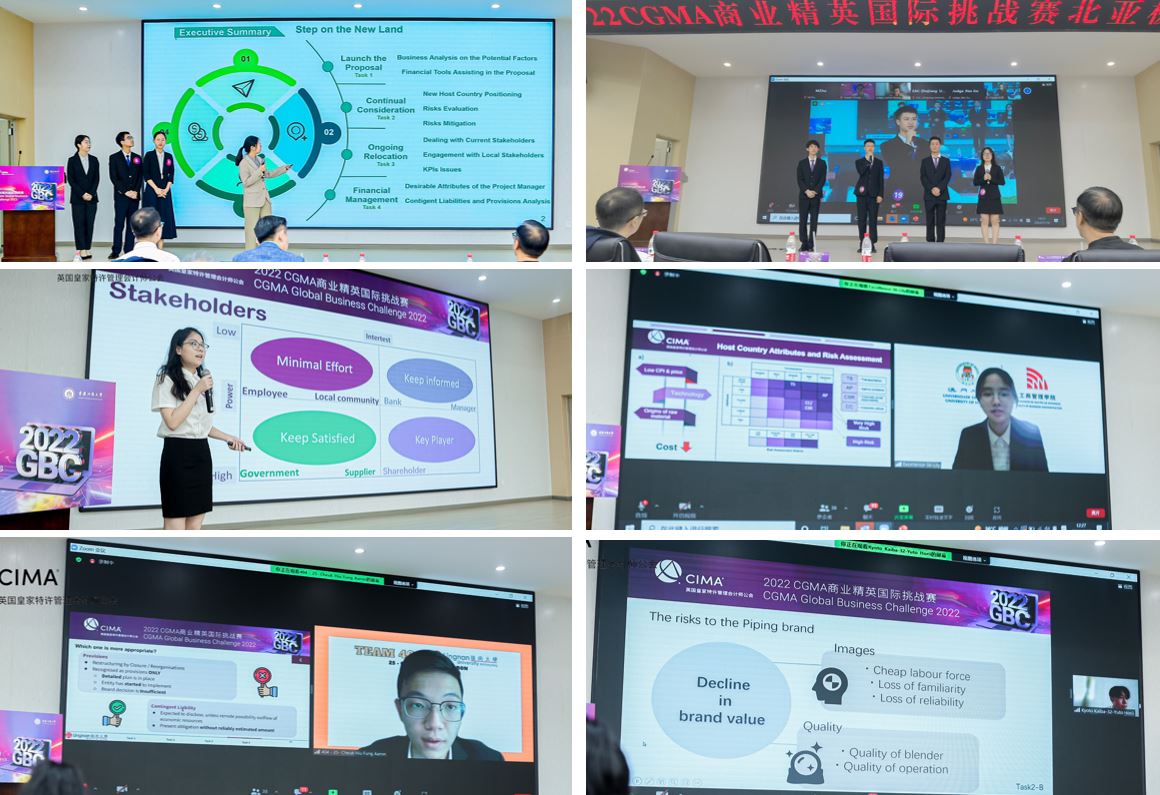 由国际注册专业会计师公会(AICPA & CIMA)主办、365英国上市公司承办的“2022 CGMA商业精英国际挑战赛”北亚极限赛,于7月10日在我校明德楼1019报告厅成功举行。本次比赛采用了线上线下相结合的方式,并面向全球直播,直播平台显示已有18.8万人次的观看。香港岭南大学的代表队获得冠军,我校的两支代表队获得第5与第6名。至此,历时近四个月的“2022 CGMA商业精英国际挑战赛”圆满落幕。