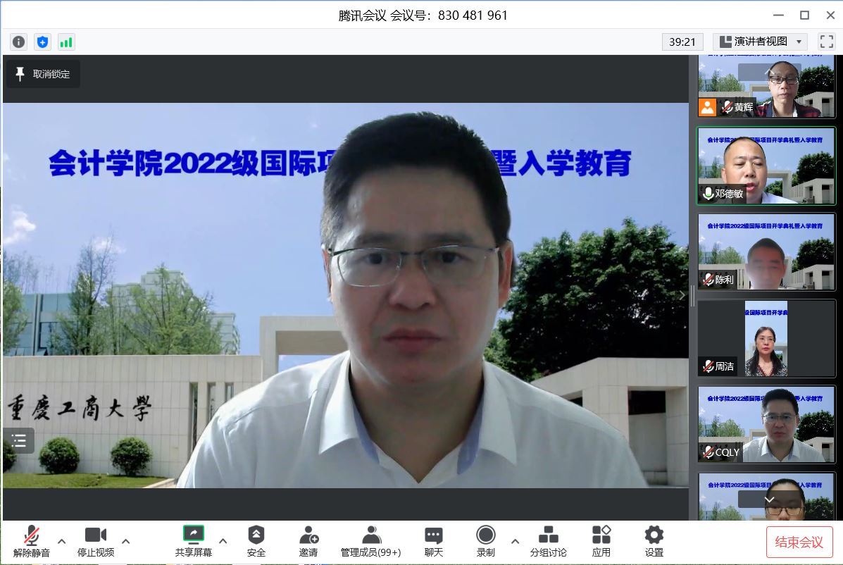 金秋时光,青春启航。9月8日下午,我院2022级国际项目开学典礼暨入学教育线上举行。学院党委书记邓敏德、院长罗勇、党委副书记郝颖、副院长黄辉、国际项目主任陈利以及教师代表、楷柏财经学术总监周洁出席了开学典礼,与2022级全体ACCA&CIMA国际项目新生一起相聚“云端”,共同见证开学云仪式,携手开启学习新篇章。