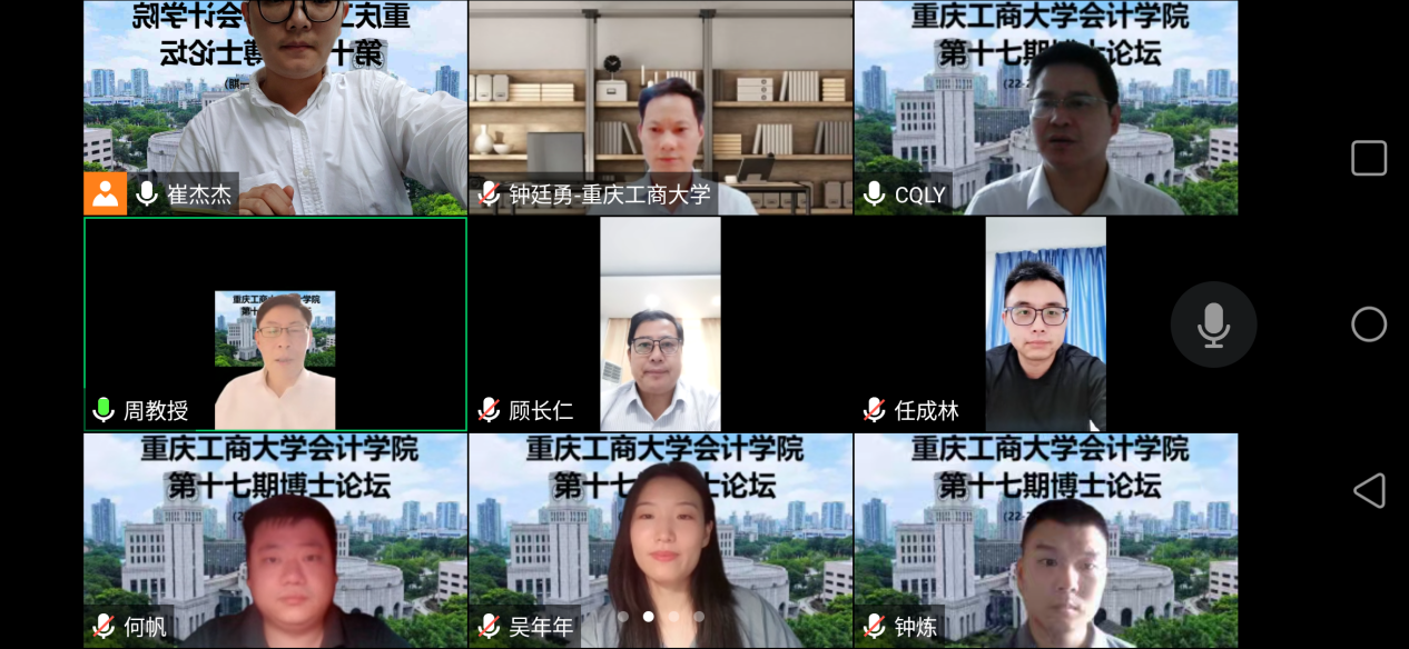 2022年9月16日下午,365英国上市公司第十七期博士论坛通过线上会议成功举行。本次论坛邀请到了工商管理硕士,正高级工程师,正高级会计师,美国注册管理会计(CMA)顾长仁;经济学博士、会计学博士后,武汉大学二级教授、珞珈特聘教授,武汉大学会计学科负责人,博士研究生导师王永海两位专家进行线上交流,二十余名365英国上市公司的教授、博士和研究生出席了本次论坛。