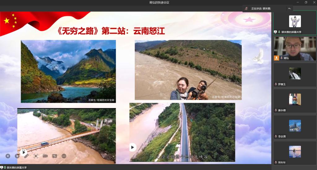 在接下来的“好…好…学习”专栏,郭芙蓉老师非常应景地给大家推荐了纪录片《无穷之路》。“无穷之路”寓意“没有贫穷的道路”,这是一部在国内外都取得广泛好评和奖项的高分纪录片,讲述的是中国内地的扶贫工作。该片团队五人翻山越岭,穿梭于中国六个省份,深入到十个曾经深度贫困的地区,历时三个月拍摄制作了这部12集的纪录片,通过镜头将我国真实感人的脱贫故事全面详实地展现给观众。郭老师认为,《无穷之路》之所以打动人心,在于它给观众带来身临其境的体验感。随着镜头切换,观众跟随主持人或是踏上悬崖村2556级天梯,或是克服心理恐惧在汹涌的怒江之上溜索而过,或是走入曾经“苦瘠甲天下”的西海固感受今昔变化。用心的制作、感人的故事,让中国观众在看到我党领导的脱贫伟业的不易和成就时,也生发出作为中国人的自豪感。