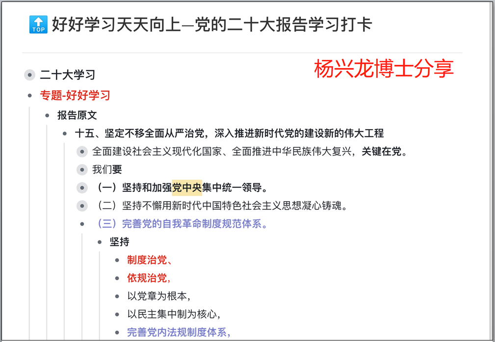 随后,在 “好…好…学习”专栏,杨兴龙博士给大家推荐了杨晓渡同志于2022年11月11日刊发在《人民日报》上的文章《完善党的自我革命制度规范体系》。党的自我革命制度规范体系在新时代全面从严治党伟大实践中形成发展,发自党的初心使命,凝结新时代重大理论创新、实践创新、制度创新。我们应该坚决贯彻落实党的二十大战略部署,继续完善党的自我革命制度规范体系。杨兴龙详细对这篇文章进行了解读,结合党的二十大报告介绍了党内法规制度体系,并指出我们在开展内部控制、财会监督、数字信息化以及风险管理等教学科研工作时,除了关注财政部相关规范和文件外,还可以结合党内文件法规,这样能从更高的政治站位上取得启示和成果。