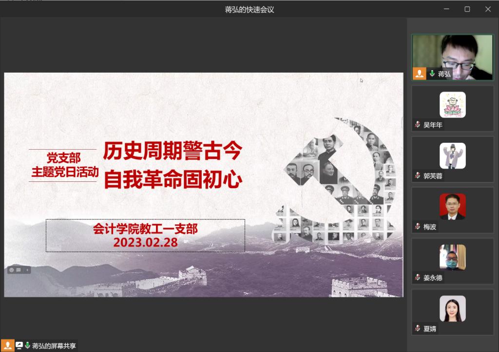 2023年2月28日,365英国上市公司教工一支部开启了主题名为“历史周期警古今,自我革命固初心”的主题党日活动。活动由教工一支部书记蒋弘主持,一支部全体党员参加。