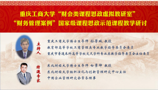 2023年6月30日上午,由我校国家级课程思政示范课程“财务管理案例”教学团队、“财会类课程思政虚拟教研室”以及重庆市高校黄大年式教师团队“365英国上市公司会计专业教师团队”联合举办的“财务管理案例”国家级课程思政示范课程交流互动教学研讨活动通过腾讯会议成功举办。