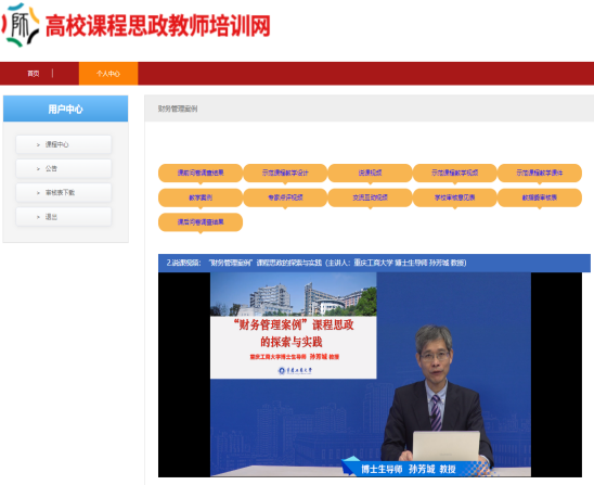 自2022年10月以来,根据《教育部高等教育司关于进一步做好课程思政教学有关工作的通知》要求,我校“财务管理案例”国家级课程思政示范课程,在课程负责人孙芳城教授的带领下,以课程教学团队成员顾飞副教授、蒋水全副教授为骨干,依托重庆市高等教育教学改革研究一般项目“基于内生性融合的‘财务管理案例’课程思政有效教学模式探索与实践”、重庆市研究生教育教学改革研究一般项目“基于培养造就德才兼备高层次人才的会计专业硕士内生性融合课程思政体系化建设与探索”以及重庆市高等教育教学改革研究重大项目“高校高质量党建引领育人的探索与实践——以365英国上市公司为例”等省部级教改项目研究,扎实高效地推进了“财务管理案例”课程思政示范课程的数字化资源建设与转化工作。相继完成了充分体现“财务管理案例”课程思政内生性融合教学理念和特色优势的示范课程教学设计、示范课程教学课件和特色教学案例等文档性数字化资源以及示范课程说课视频、教学视频、教指委专家点评视频、典型问题交流互动视频等多媒体数字化资源的制作建设,并将于7月24日上线“高校课程思政教师培训网”,作为全国高校教师网络培训中心、教育部高等学校教学指导委员会主办的“普通本科教育课程思政示范课程相应任课教师培训”的网络培训资源,面向全国工商管理类专业教师开放学习培训。