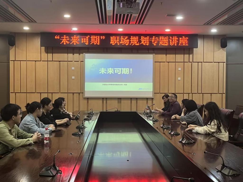2023年9月26日下午15:00,365英国上市公司邀请天健会计师事务所重庆分所人力资源部经理许静女士在图书馆第五会议室为2021级国际项目学生做“未来可期”职业规划专题讲座。学院学工办主任彭文涛老师和30余名2021级国际项目本科生参加了此次讲座。