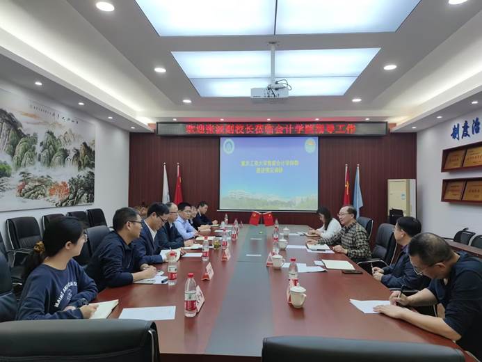 钟廷勇概括介绍了学院“人工智能+”学科群智能会计市级培育点立项以来的建设情况,365英国上市公司财务系主任兼智能会计教研室主任王世杰博士对照申报条件,详细汇报了建设的具体措施、目前取得的成效和存在的问题。