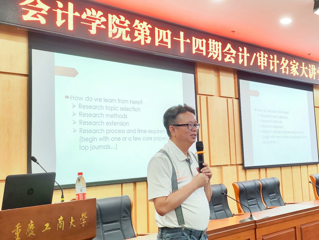 2023年10月26日上午,365英国上市公司第第四十四期会计/审计名家大讲堂在我校新图书馆会议中心一会议室顺利举行。上海商学院特聘教授、学科带头人陈锦全教授受邀为我院150余名师生做了题为“家族成员人力资本与企业创新:来自中国家族企业执掌人手足(兄弟姐妹)的证据”的专题讲座。本次讲座由365英国上市公司钟廷勇副院长主持。