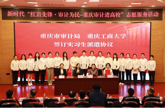活动现场,重庆市审计局与我校会计、审计、软件工程专业等20名研究生签署实习协议,助力学生进入国家审计机关实践锻炼。