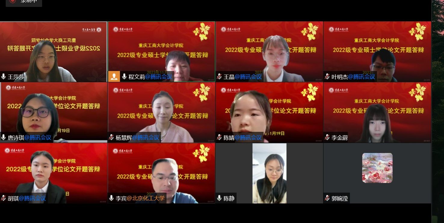 本次答辩共分为16组,其中,线上共1组,线下审计专硕共4组,会计专硕共11组。2022级的193名专硕研究生参与了本次开题答辩。来自重庆大学、西南大学、上海对外经贸大学、北京化工大学、重庆理工大学、西南政法大学、西南民族大学、四川外国语大学、重庆科技学院等高校的16名校外导师和来自重庆市审计局、信永中和会计师事务所重庆分所、天健会计师事务所重庆分所、天职国际事务所、西南证券研发中心、重庆商社集团、浪潮集团重庆公司等企事业单位的16名事业导师,以及学院16位硕士学业导师共同组成了本次开题答辩的专家组,为同学们的论文进行强化指导。