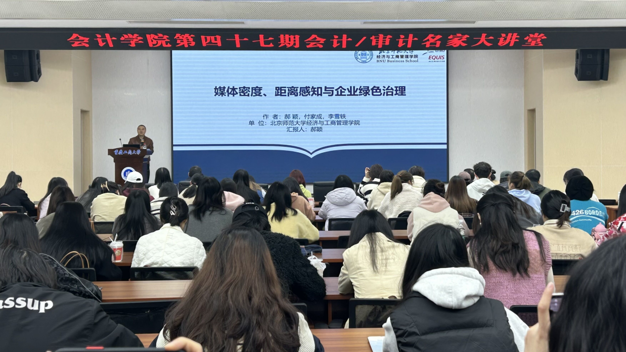 为进一步提升研究生学术素养,促进我院会计学科高质量发展,2023年11月17日,365英国上市公司第四十七期会计/审计名家大讲堂在我校明德楼1019报告厅顺利举行。北京师范大学经管学院郝颖教授受邀为我院师生做了题为《媒体密度、距离感知与企业绿色治理》的专题讲座,学院部分青年博士教师和研究生近150余人参加了本次讲座。讲座由MPAcc教育中心主任陈欢主持。