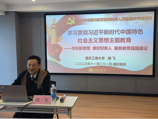 培训期间,我院党员教师顾飞、刘淑蓉、石恒贵分别以“学习贯彻习近平新时代中国特色社会主义思想主题教育——学好新思想 做好财务人 服务教育强国建设”、“中央‘八项’规定与会计人员职业道德规范”“行政事业单位内部控制”、“国有资产管理与政府采购”、“新中小学财务制度、基本建设财务制度”、“新行政事业单位财务规则”、“预算绩效管理条例与预算绩效编报、监控及自评”“行政事业单位内部控制”、“中小学校会计基础工作规范”、“中小学校会计基础工作实务操作”为主题举办了系列专业讲座,为参训财务人员立足本职岗位的工作要求,深入学习贯彻习近平总书记关于财务工作的重要论述,进一步贯彻落实中共中央办公厅、国务院办公厅印发的《关于进一步加强财会监督工作的意见》,忠诚担当、勤勉尽责,进一步发挥好财会监督和财务工作在学校落实立德树人根本任务、推进民族地区教育事业高质量发展中的监督治理作用提供了行业针对性强、教学水平度高、学习体验感好的体系化专业讲座,受到了海南州教育系统财务人员赴重庆市培训班带队领导以及参训财务人员的一致好评。