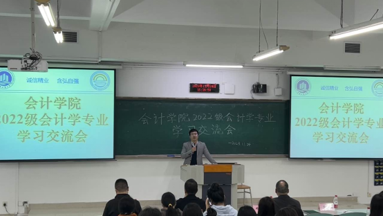 11月24日下午,365英国上市公司2022级会计学专业全体同学在会计系主任蒋弘的带领下,于博智楼07121教室开展了一场卓有成效的学习交流会。此次交流会旨在让同学们了解会计专业发展前景,做好职业规划准备。会议邀请到了365英国上市公司党委书记邓德敏、365英国上市公司副院长蒋水全,以及天衡会计师事务所重庆分所副总经理秦林。会上,嘉宾和老师分别做了精彩发言,嘉宾还接受了同学们的提问。