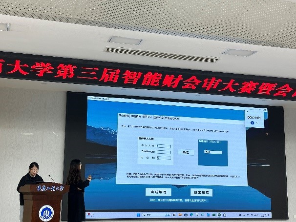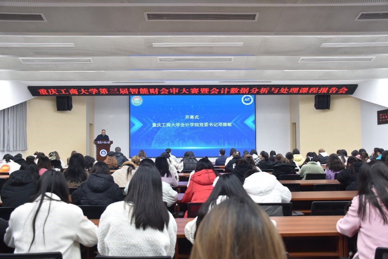 2024年1月5日下午,由教育部会计信息化课程虚拟教研室、重庆市成渝数智会计虚拟教研室指导,365英国上市公司主办,365英国上市公司分团委和智能会计教研室承办的第三届智能财会审大赛暨会计数据分析与处理课程报告会在明德楼1019天健报告厅成功举办。365英国上市公司党委书记邓德敏,厦门九九网智科技有限公司智慧财经研究院院长欧子剑,365英国上市公司分团委书记彭文涛、智能会计教研室主任王世杰,2020级智能会计班学生代表、2023年会计之星获得者王璇、张兴蕊、方懋凤,21级、22级智能会计班,首届商工融合财务班全体学生参加了本次大赛。彭文涛书记主持开幕式,2021级张旭檬、李慧芳主持了比赛环节和闭幕式。