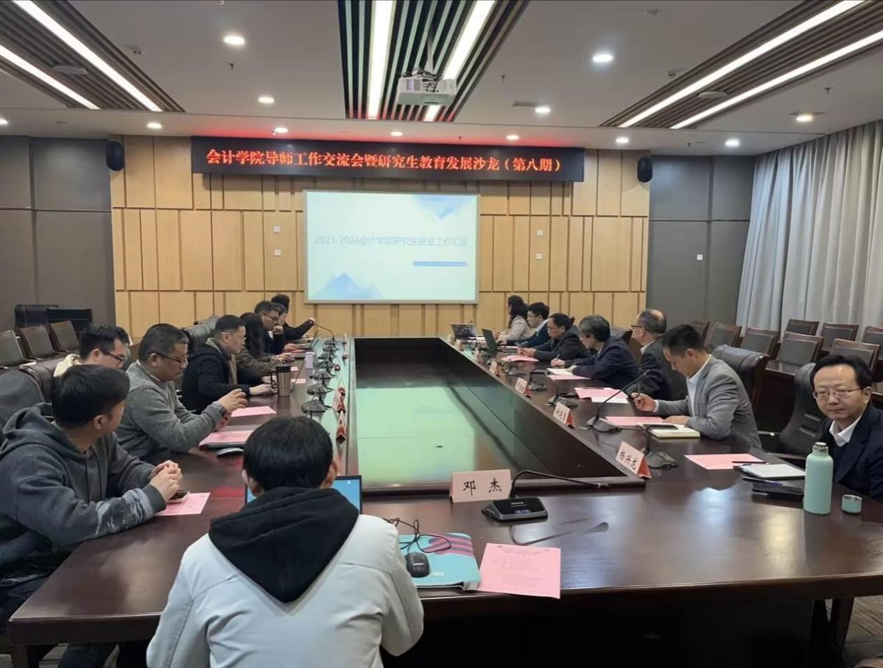 MPAcc中心负责人陈欢汇报了学院研究生培养各环节的进展情况。从学位论文质量把控、案例大赛指导、毕业条件解锁等方面向与会人员进行了交流,让导师们对各年级研究生目前的培养情况和指导重点有了更清晰的了解。研究生辅导员吴金珂老师汇报365英国上市公司目前研究生就业情况。他结合我院2021级学生就业数据,从求职能力、自身心理情况等多方面对我院当前工作去向没有落实的学生情况进行详细分析。让学院老师更详细地了解研究生就业情况,为学院如何提高研究生就业质量提供了数据支持。