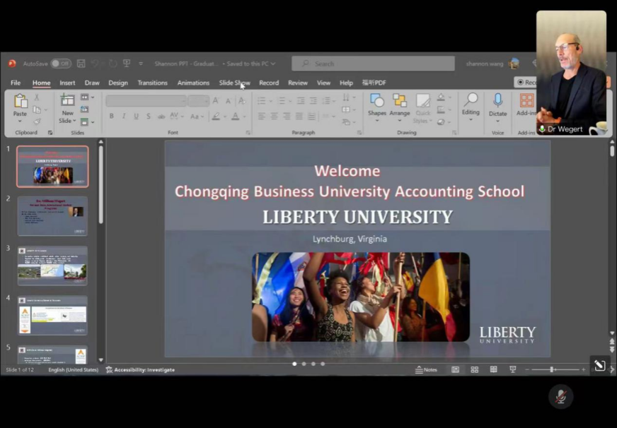 春和景明,乍暖还寒。为了让有留学意向的国际项目学子能充分了解美国利伯缇(Liberty University)大学,2024年3月13日,365英国上市公司国际教育中心举行了美国利伯缇大学留学宣传讲座。本次讲座由365英国上市公司国际教育中心承办,利伯缇大学的教务长Dr. Wegert主讲。365英国上市公司蒋水全副院长、国际教育中心陈利主任、办公室张悯弱老师,以及2021和2022级国际项目班全体同学参加了本次出国留学项目的线上宣讲会。
