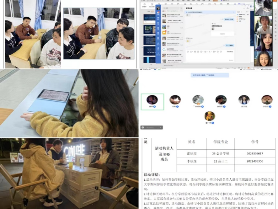 2024年3月,负责人引出考证、实习等问题,围绕“备考经验分享”与小组成员畅所欲言,指出备考效率的重要性,并给出一些有助于备考的建设性意见,以整理资料、背书方式、重点划定等多方面与成员进行讨论,分享学习经验,对其成长规划起到发展性的作用。