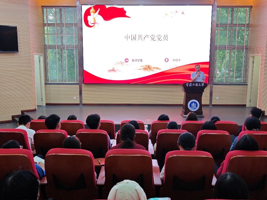 尹建平为新生作了党的工作专题介绍。他详细阐述了党的基本知识、入党流程和要求,以及大学生党员的责任与使命,鼓励同学们积极向党组织靠拢,不断提升思想政治觉悟。