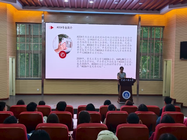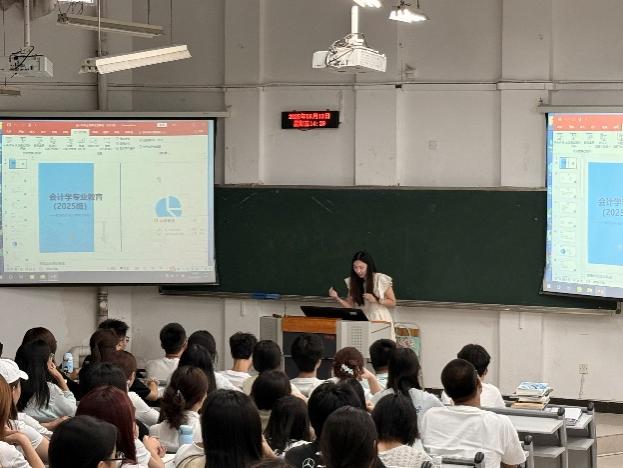 在专业解读环节,各系负责人为新生带来了详实的专业介绍。国际教育中心主任宋昕倍重点介绍了ACCA、CIMA等国际证书项目,详细说明课程体系,为有志于国际化发展的同学提供了多元化选择。会计系副主任夏婧系统阐述了会计学专业的培养目标,强调该专业注重培养学生的会计核算、财务分析和审计监督能力。