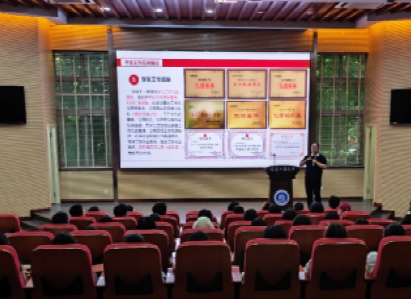 随后,分团委负责人郑志欣为新生作了团的工作介绍,详细说明了团组织架构、团员权利与义务、主题团日活动以及社会实践等内容,希望新生们能在团组织中锻炼成长,发挥先锋模范作用。