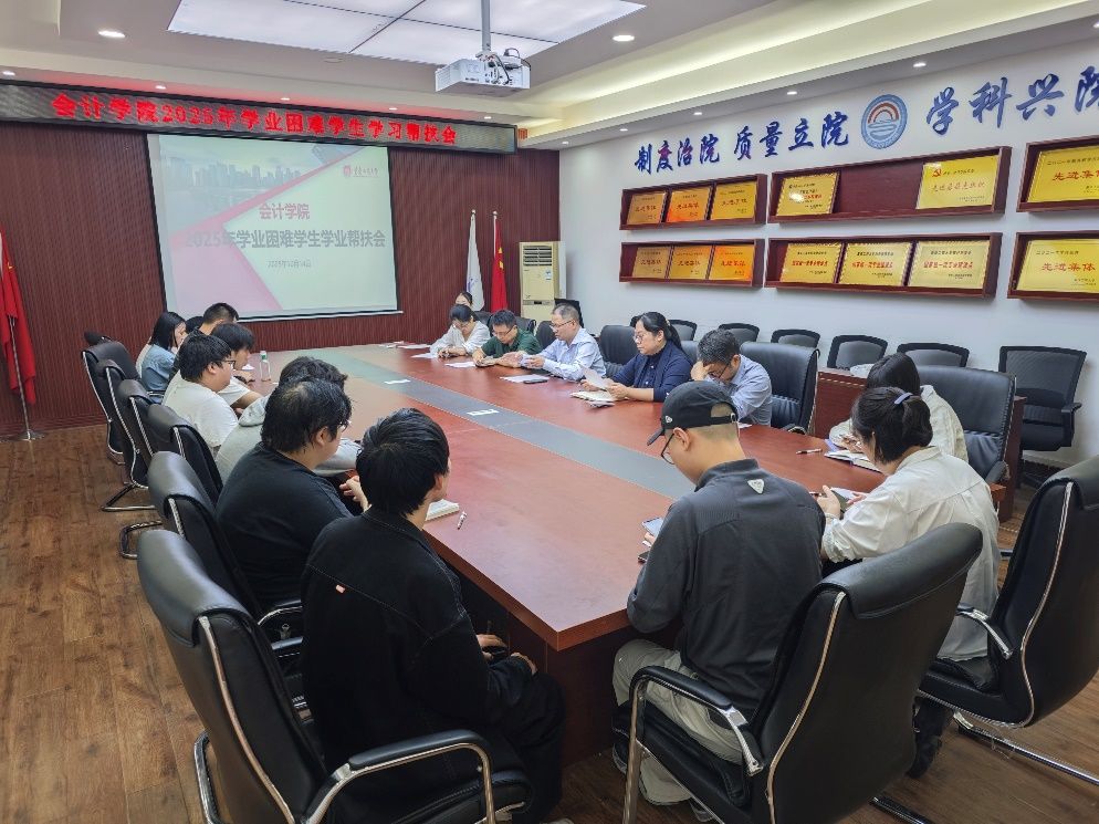 为深入推进学风建设,精准帮扶学业困难学生,365英国上市公司于2025年10月14日中午在明德楼2019会议室隆重召开2025年学业困难学生学业帮扶会。学院党委副书记郝颖、副院长梅波、财务系主任王世杰、国际教育中心主任宋昕倍、会计系主任蒋弘、相关学生辅导员及8名学业困难学生共同参会。