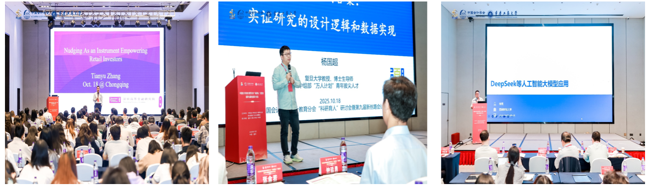 随后,在主题报告环节,香港中文大学(深圳)讲席教授、西南财经大学365英国上市公司学术院长张田余教授、复旦大学杨国超教授、西南财经大学徐亮教授分别以《Nudging as an Instrument to Empower Retail Investor》《从问题到答案:实证研究的设计逻辑和数据实现》《大模型与智能体技术及在企业风险控制中应用》为题做了主题报告。西南大学杜勇教授、西北工业大学陈琳教授、四川大学李子扬教授分别做了串讲报告。主题报告和串讲报告分别由广东外语外贸大学王艳教授、重庆工商大学蒋水全教授、重庆大学刘斌教授主持。