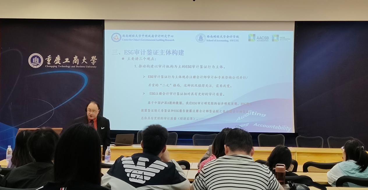 讲授过程中,师生们专注聆听、积极思考。有学生表示,此次讲堂让自己对会计/审计专业在可持续发展领域的价值与“专业自信”有了具象认知,为后续学术研究方向选择与职业规划提供了重要指引。