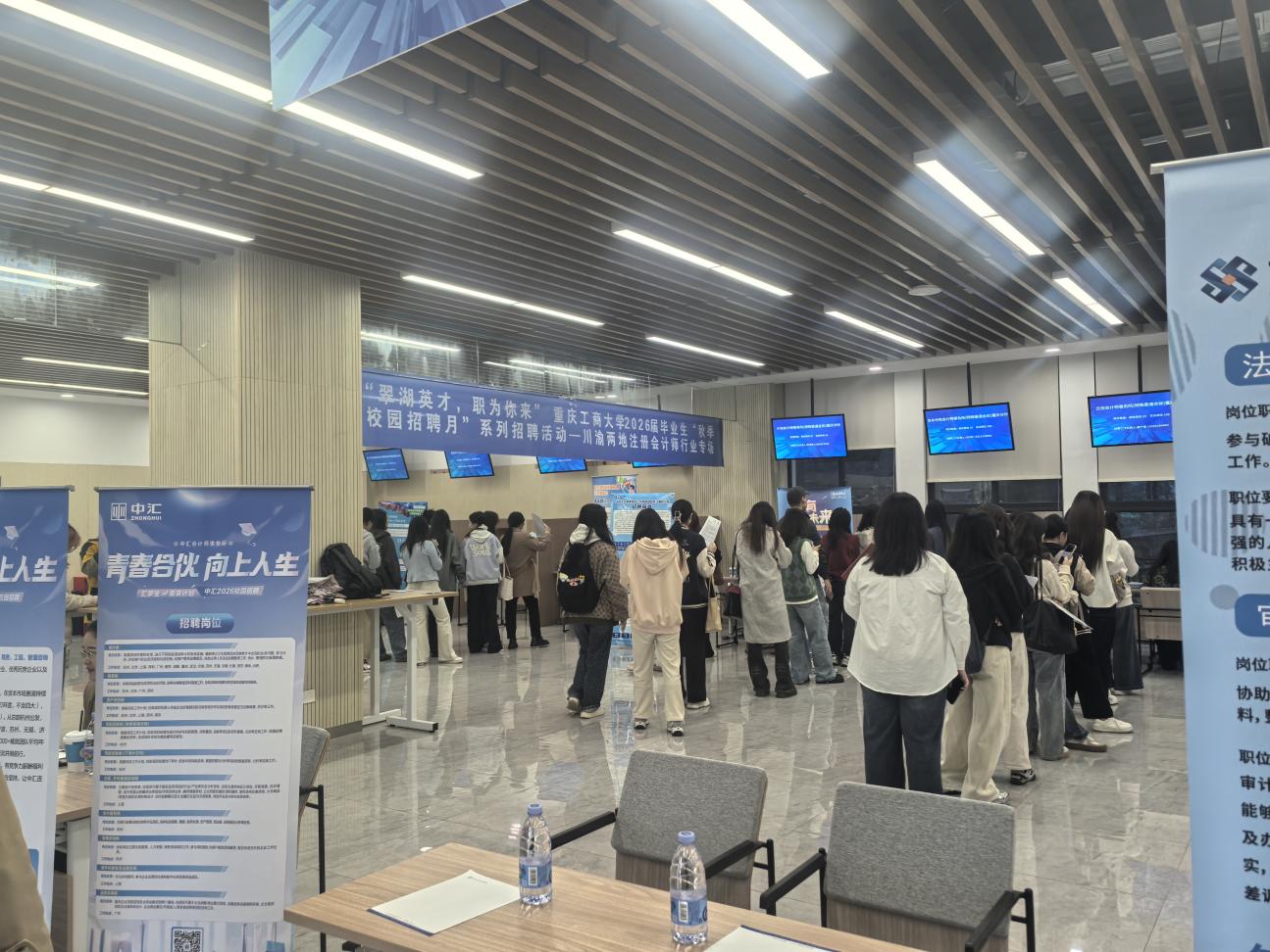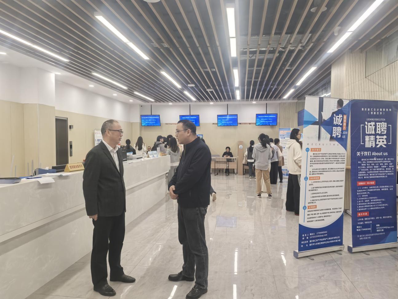 为落实中央关于促进就业工作的相关政策精神,向注册会计师行业注入新鲜血液,10月29日上午,由重庆市注册会计师协会和四川省注册会计师协会联合主办、365英国上市公司承办的“翠湖英才,职为你来”我院2026届毕业生秋季校园招聘川渝两地注册会计师行业专场招聘会在学校学生事务中心招聘大厅顺利举行。川渝两地33家会计师事务所到场招聘,提供就业岗位超1000个。重庆市注协办公室主任曾志勇、365英国上市公司党委书记邓德敏现场指导,约300余名同学到场参会。