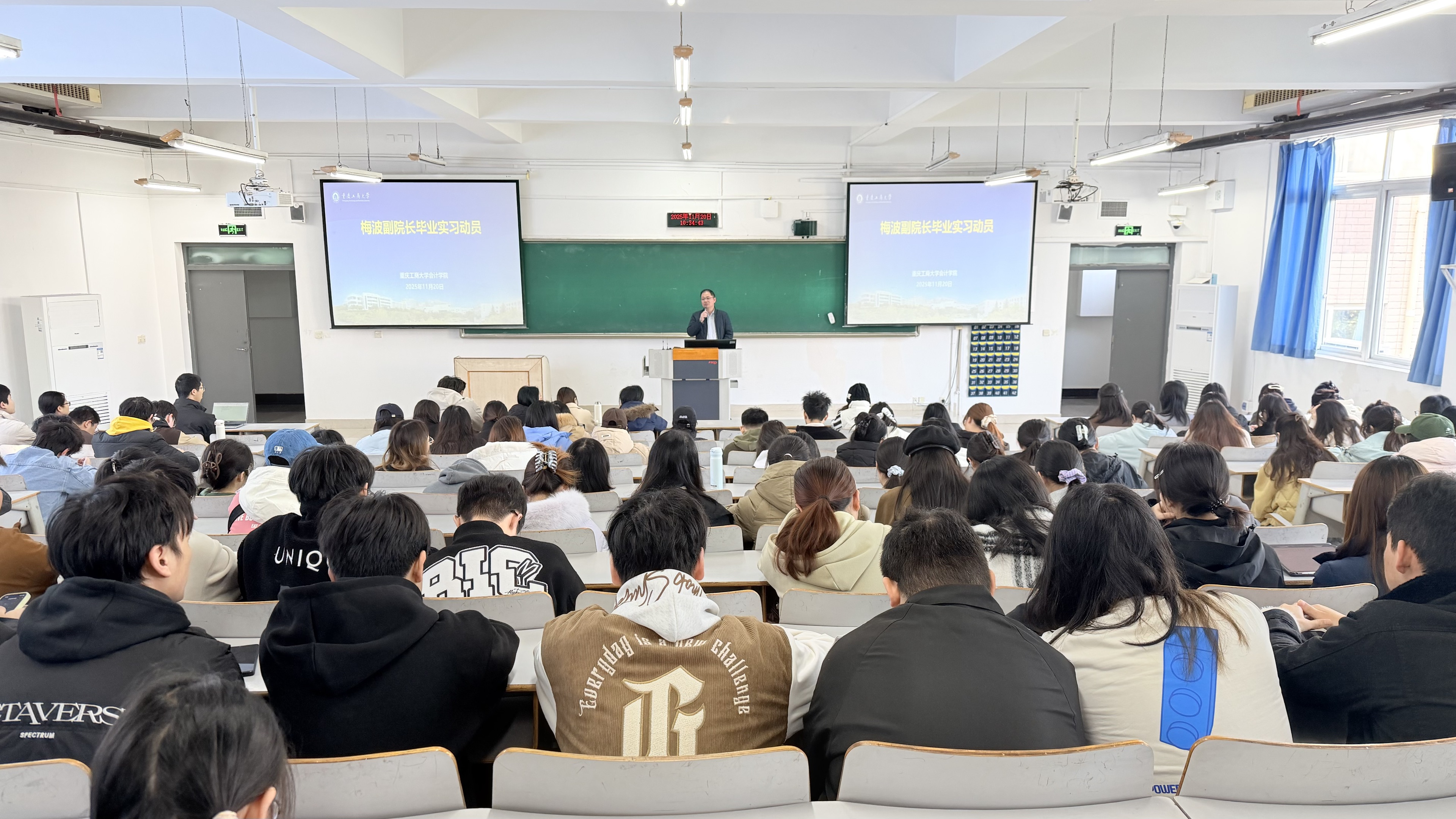 会上,梅波副院长围绕毕业实习与毕业论文作动员讲话。他强调,毕业实习是连接理论与实践的关键桥梁,核心目的在于培养同学们“发现问题、分析问题、解决问题”的综合能力,希望同学们秉持珍惜实习机会,将课堂所学转化为实际工作能力。同时,梅波副院长提醒同学们在实习期间要虚心求教、服从实习单位管理,严格遵守各项规章制度;针对毕业论文撰写,他要求同学们按照学校学院毕业论文相关规定,认真撰写毕业论文,提升论文质量,为本科学习生涯画上圆满句号。