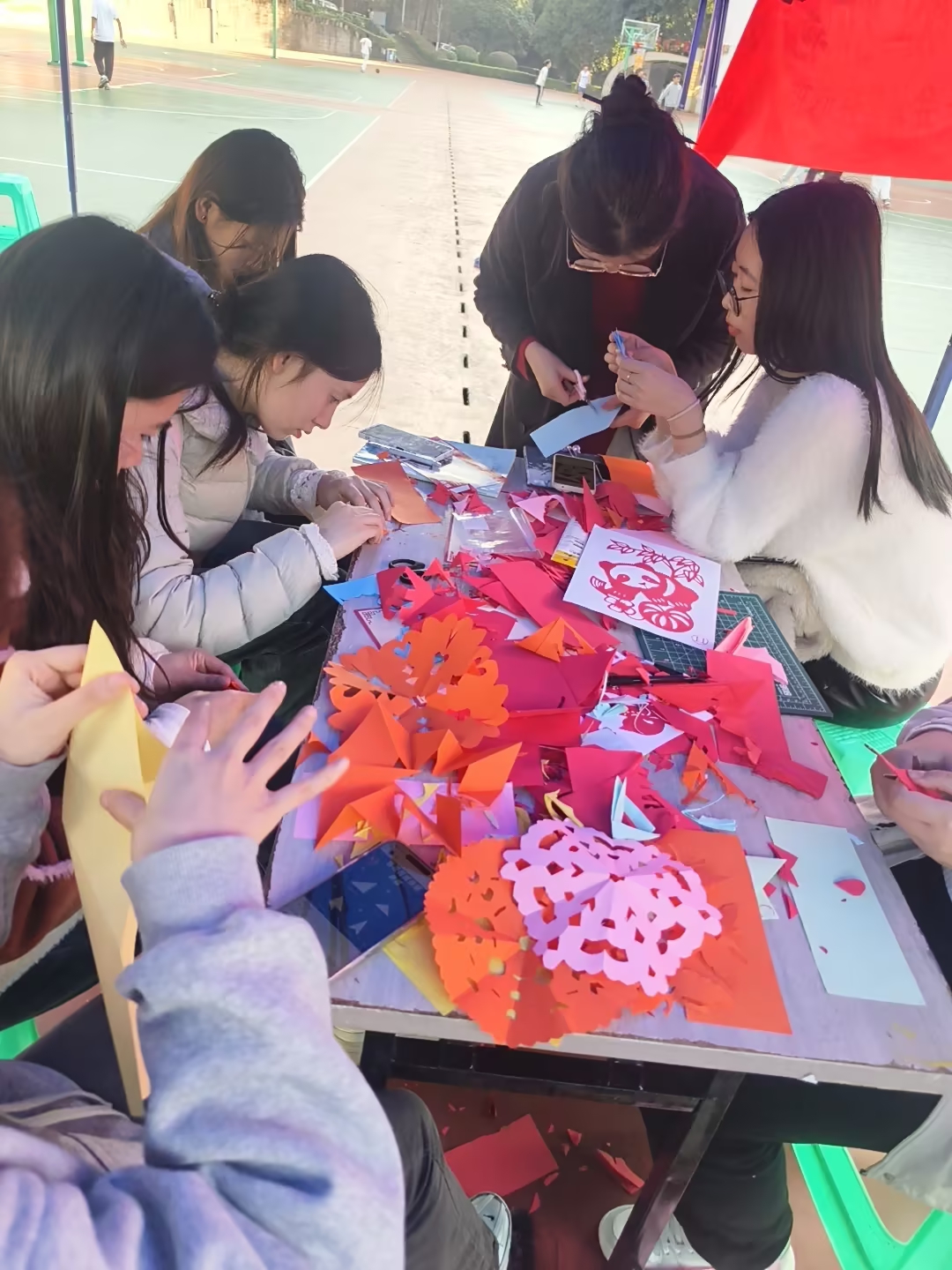 本次活动作为学院心理健康教育体系的重要一环,创新性地将中华优秀传统文化与心理调适训练相结合,旨在引导学生在动手实践中舒缓情绪、涵养心灵。活动尚未开始,现场已聚集众多热情参与的学生。香囊制作、剪纸艺术、团扇绘制三大体验区座无虚席,同学们兴致盎然,沉浸于手工创作,展现出对传统文化与心理健康融合模式的高度认同。