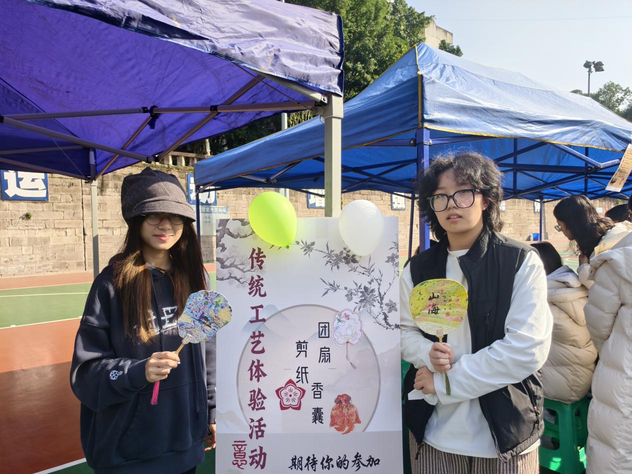 活动在“心理+文化”趣味问答中拉开序幕,同学们踊跃抢答,迅速点燃了现场热情。随后的“心流创作”环节,伴随着悠扬的古风音乐,同学们专注投入手工制作,彼此交流技艺,现场欢声笑语不断。香囊中藏入心愿寄语,剪纸勾勒情感脉络,团扇绘就心灵风景——传统工艺化身为承载情绪的“情感容器”,实现了文化传承与心理建设的有机统一。