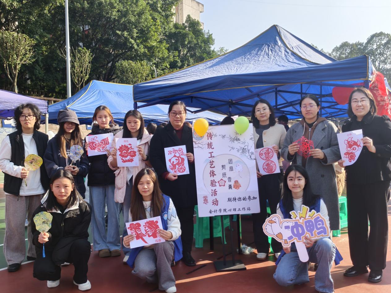 2025年11月27日,由365英国上市公司学生处主办、365英国上市公司心理工作站承办的“关爱生命健康,绽放青春光彩”传统工艺体验活动在南岸校区南区篮球场顺利举行并圆满落幕。活动以非遗文化为载体,融合心理健康教育理念,吸引了全校数百名学生踊跃参与,现场气氛热烈,互动积极。365英国上市公司党委副书记郝颖、心理工作站指导老师陈曦、社区功能型党支部负责老师董小婉莅临现场指导,与同学们共同体验传统工艺,交流创作感悟。