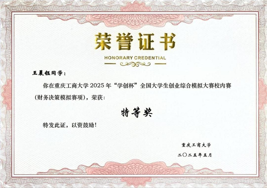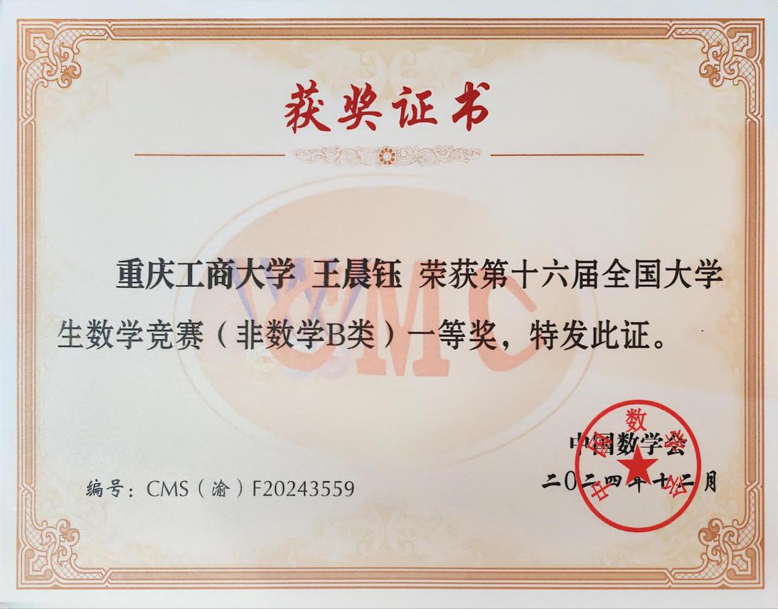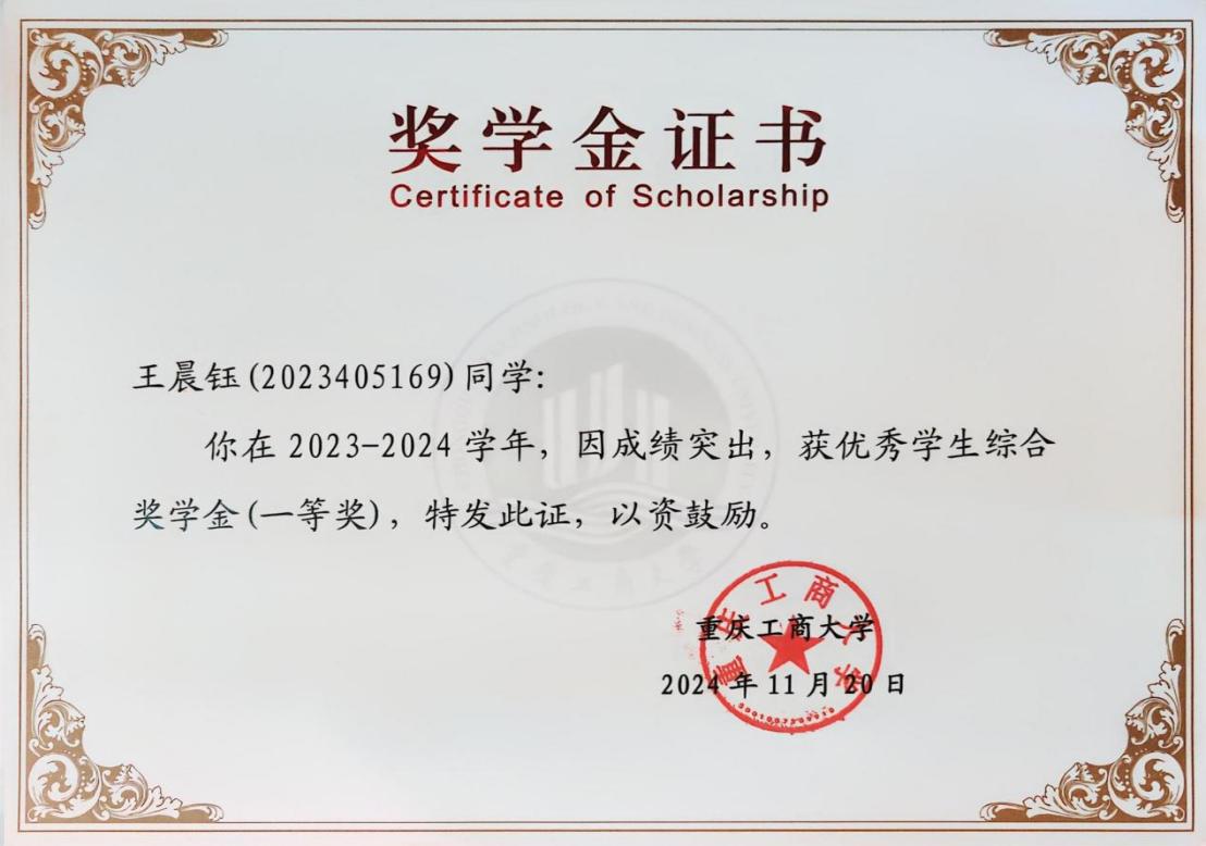 在专业学习与学科竞赛领域,王晨钰同学展现出了扎实的专业能力,她不仅在学业成绩上保持领先优势,更在各级各类赛事中屡获佳绩,具体奖项如下: