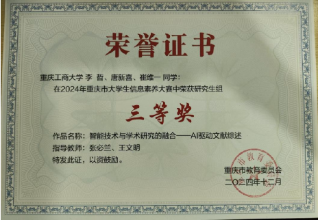 唐新喜在学业上秉持“深耕细作、学以致用”的态度,成绩与能力双向出彩。他专业课程表现突出,凭借扎实的知识储备通过CPA专业阶段财务管理科目,构建起扎实的会计专业知识体系。在学科竞赛领域,唐新喜累计参与16项赛事并屡创佳绩:不仅斩获第四届全国会计知识大赛(重庆赛区)一等奖、“天健杯”西南地区MPAcc&MAud案例大赛二等奖等省级及以上奖项,还收获2025年AI财经大赛省级一等奖、2024年AI+信息素养大赛省级三等奖,以及校级、院级奖项共13项。这些经历既锤炼了他的专业应用能力,也让他在创新解题中积累了实践经验。