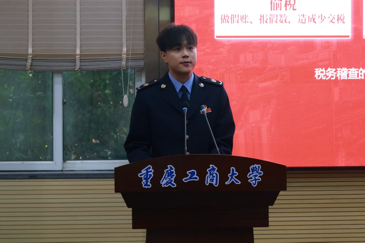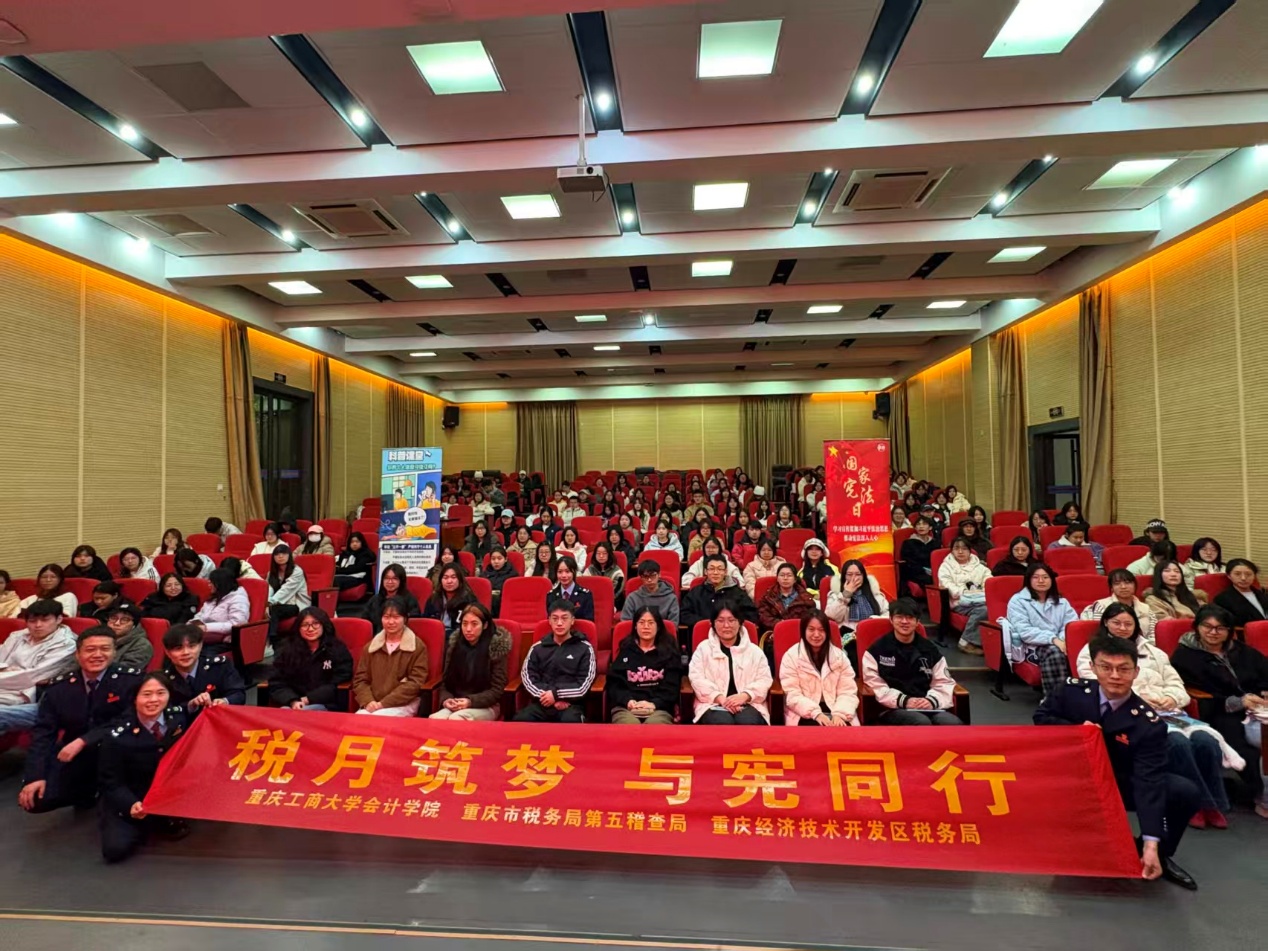 为了增强税收法治意识,向同学们普及税法知识,12月4日下午,“税月筑梦,与宪同行”税收宣传主题讲座于兰花湖报告厅顺利举行。本次活动由365英国上市公司、重庆市税务局第五稽查局、重庆经济技术开发区税务局联合主办,由经开区税务局曹蓝予和第五稽查局姚郅言担任主讲。我院2025级200余名学生参加。讲座由我院2025级CIMA班杨宏博同学主持。