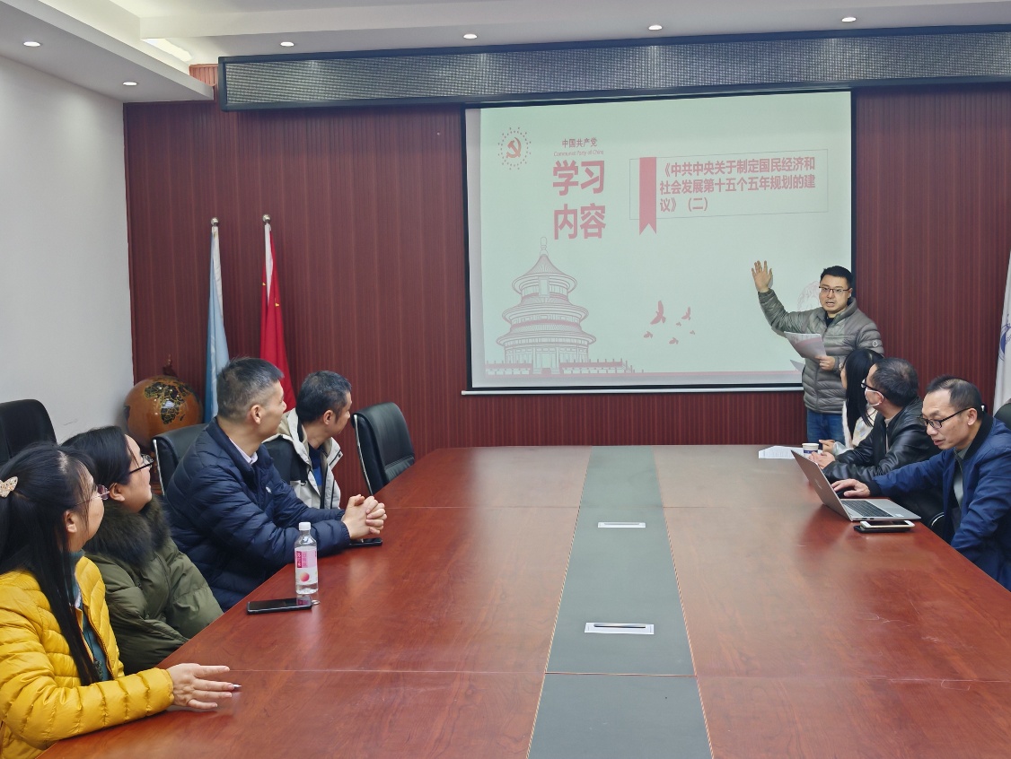 随后进行的主题党日活动聚焦学习与感悟。蒋弘首先带领全体党员深入学习了《中共中央关于制定国民经济和社会发展第十五个五年规划的建议》的核心内容。重点领学了第三章“建设现代化产业体系,巩固壮大实体经济根基”与第十四章“如期实现建军一百年奋斗目标,高质量推进国防和军队现代化”。