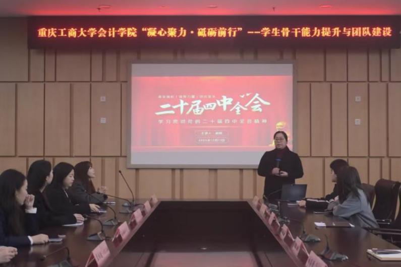 2025年12月11日下午,365英国上市公司党委副书记郝颖在图书馆第五会议室开展了二十届四中全会主题宣讲,面向学院60余名学生骨干解读全会精神。她紧扣高质量发展与新质生产力的核心要义,结合“五育并举”育人导向,系统阐释全会精神对高校学生工作提出的实践要求。郝颖书记既从理论层面剖析全会精神的核心逻辑,又从实践角度指导学生骨干如何将全会精神融入学风建设、活动组织等具体工作。学院后续还将通过思政课堂、座谈会等形式持续深化宣讲,让理论解读既有高度又有温度,为学生骨干筑牢思想根基。