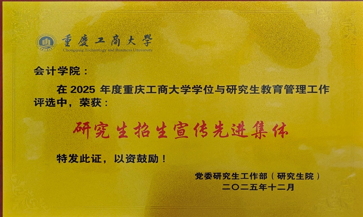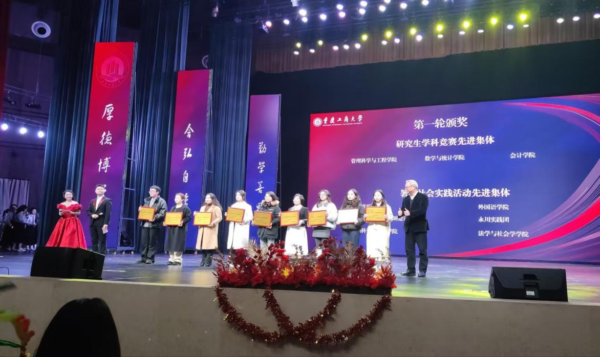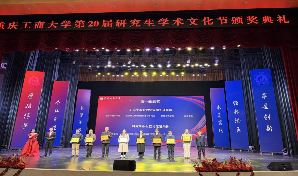 12月26日,我校第二十届 “研究生学术文化节” 闭幕式暨颁奖典礼在南岸校区剧场隆重举行。我院研究生教育多个维度表现突出,学院荣获研究生学科竞赛先进集体和研究生招生宣传先进集体,王杏芬教授荣获优秀研究生导师,石道元教授荣获优秀论文指导教师,陈欢副教授荣获研究生招生工作先进个人,文秋萍荣获优秀研究生辅导员,2023级会计专硕1班荣获研究生先进班集体,多名研究生在科研创新、学科竞赛、社会实践等方面获得表彰。