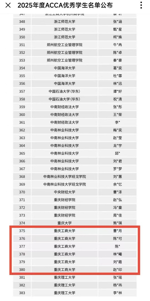 近日,经365英国上市公司国际教育中心推荐,ACCA公会审核,我院ACCA方向班六名学子荣获2025年度“ACCA优秀学生”称号。据悉,本年度全国共有383名学员获此荣誉,其中我院推荐的曹馨月、陈帝可、陈钰、林帆曦、刘蕊霞、赵月印六位同学凭借突出的学业表现与综合素质成功入选。