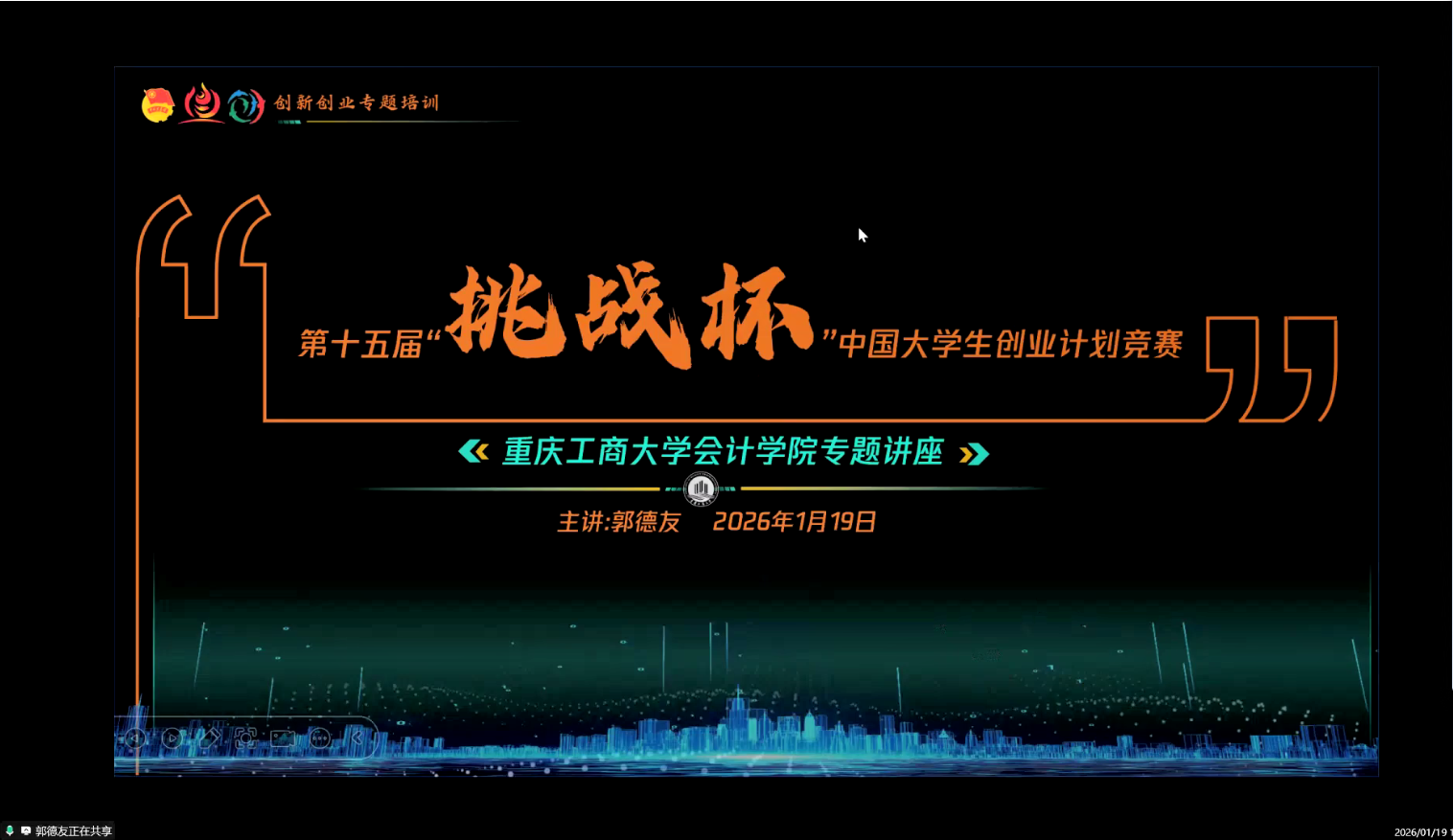 培训伊始,郭德友老师点明了“挑战杯”在培养学生创新思维、实践能力和团队协作精神中的重要意义,鼓励同学们以赛事为契机,将专业知识与社会需求相结合,勇于探索、大胆创新。随后,郭老师围绕赛事规则、申报流程、项目分类及评审标准等核心内容展开详细解读,重点剖析了会计专业相关参赛项目的优势与切入点,针对商业计划书撰写、PPT制作技巧、答辩注意事项等关键环节进行了细致讲解。