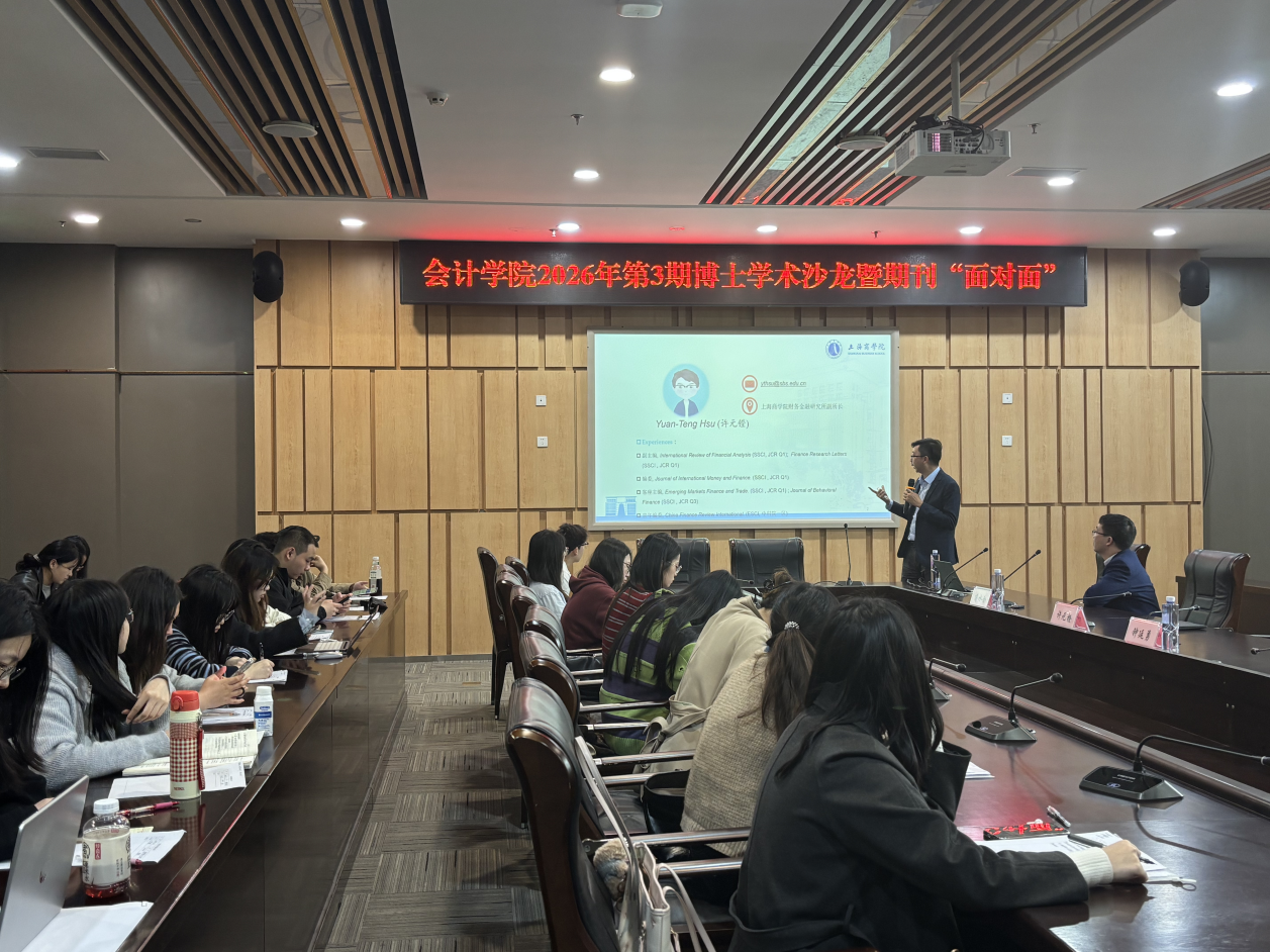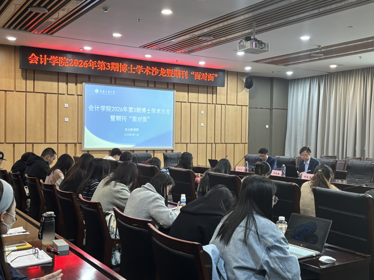为夯实会计学科研究基础、拓宽研究生学术视野,2026年3月13日下午,365英国上市公司第3期博士学术沙龙暨期刊“面对面”在图书馆五会议室顺利举行。本次沙龙由365英国上市公司院长钟廷勇教授、365英国上市公司副院长蒋水全教授共同主持,学院博士研究生及硕士研究生共同参加。