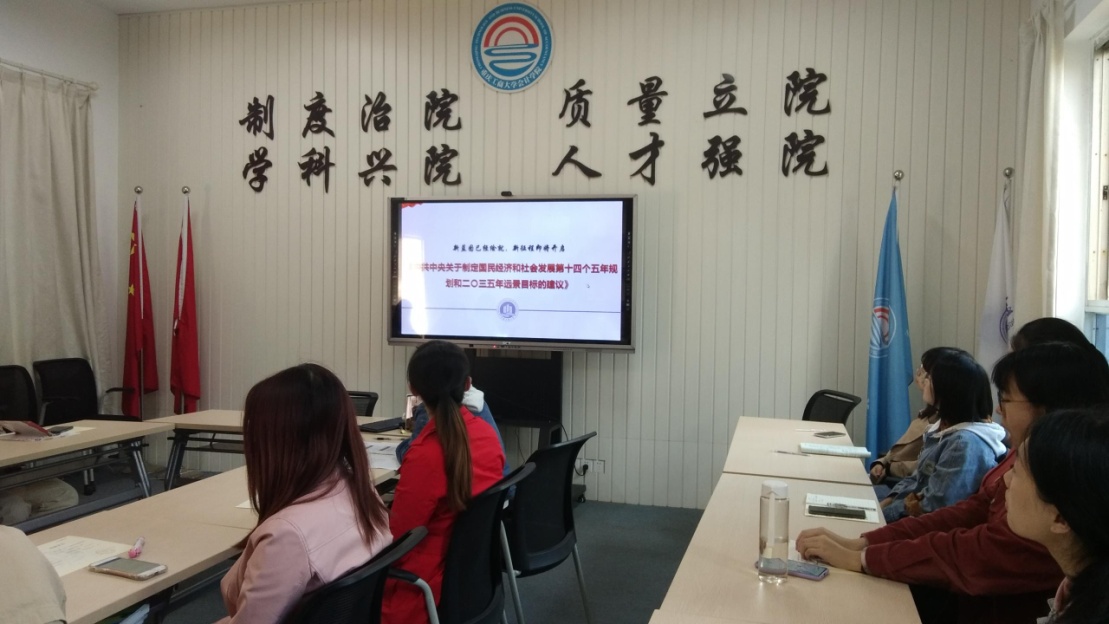 付海南同志领学了《中国共产党第十九届中央委员会第五次全体会议公报》内容。从“决胜全面建成小康社会取得的决定性成就”“到二〇三五年基本实现社会主义现代化远景目标”“‘十四五’时期经济社会发展的主要目标”和“实现奋斗目标的具体举措”等方面,对《中共中央关于制定国民经济和社会发展第十四个五年规划和二〇三五年远景目标的建议》进行了详细梳理,并结合教育实际,对全会精神进行了全面宣讲和深入阐释。付海南谈到:党的十九届五中全会是在全面建成小康社会即将收官、全面建设社会主义现代化国家即将启程的重要历史时刻召开的一次十分重要的会议。在“两个一百年”奋斗目标历史交汇点上,全会重点研究“十四五”规划并提出建议,将“十四五”规划与2035年远景目标统筹考虑,对于激励全党全国各族人民,战胜前进道路上各种风险挑战,为全面建设社会主义现代化国家开好局、起好步,具有十分重要的意义。我们一定要在以习近平同志为党中央的核心、全党的核心领航掌舵下,团结一心、顽强奋斗,战胜各种艰难险阻,把中国特色社会主义更加有力地推向前进。
