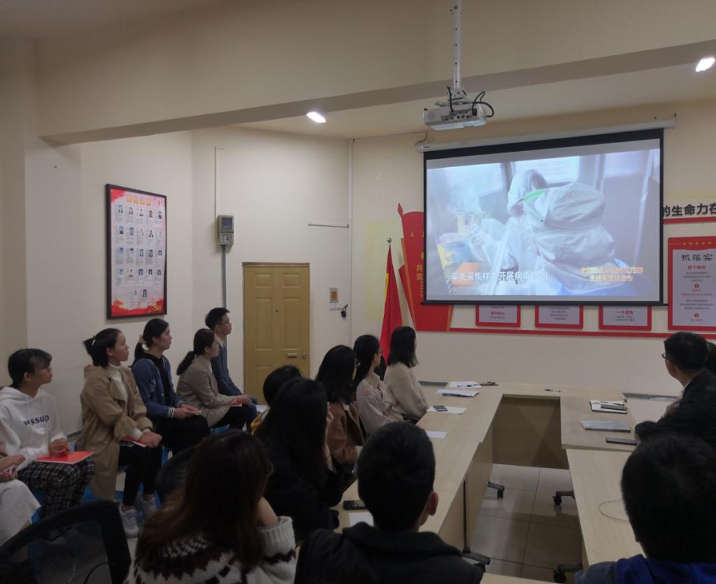 首先带领大家学习了在全国抗击新冠肺炎战斗中的英雄故事。全体支部党员观看了陈薇院士关于于抗疫冲一线的入党初心讲述,以及敢医敢言的钟南山院士、身先士卒的张定宇在时代楷模厅的演讲。随后,支部党员同志观看了抗洪英雄陈陆的相关报道和传承伟大抗洪精神的新青年抗洪一线视频。通过视频大家感受到了新时代的青年用实际行动展现出了越艰险越向前的青年力量。