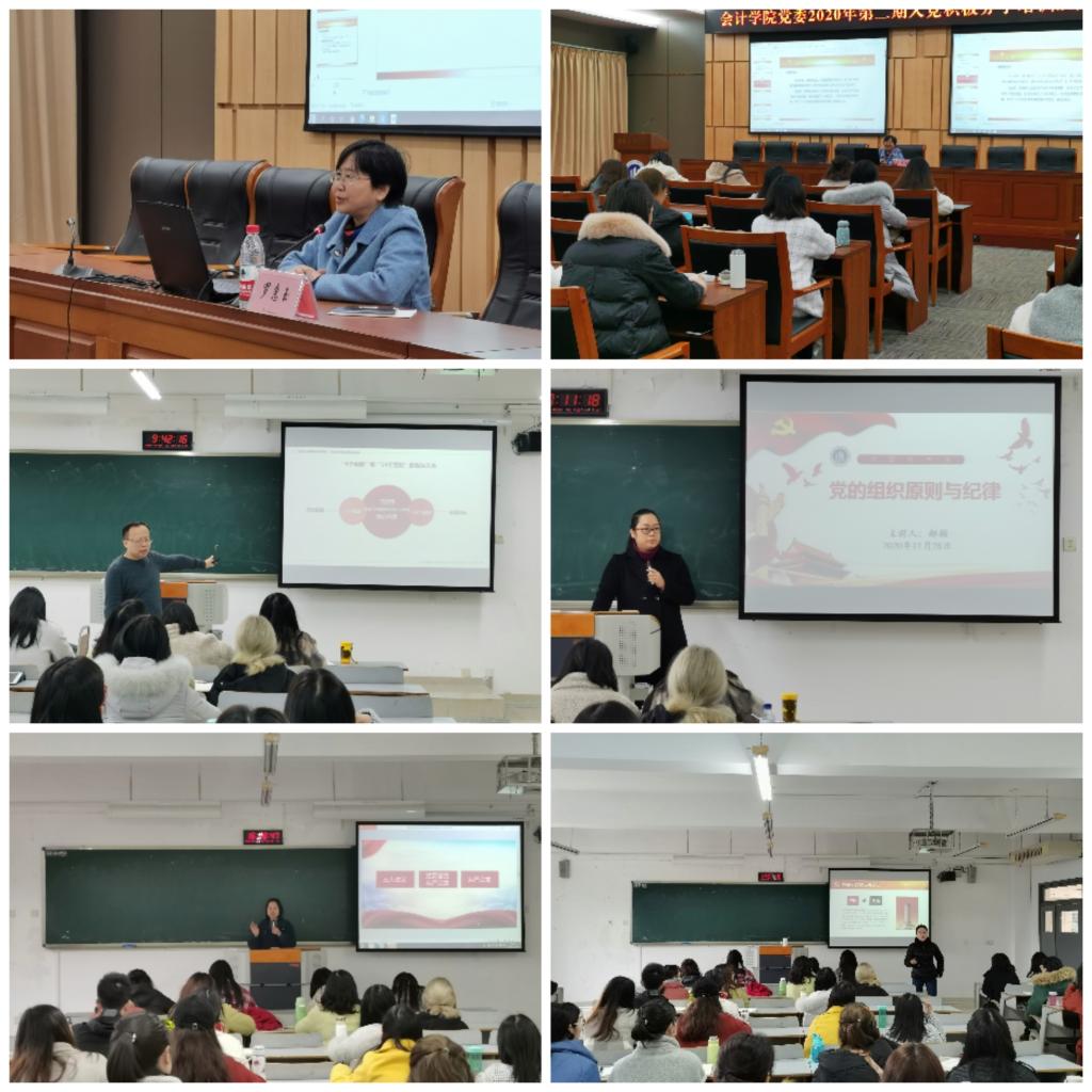 罗惠玉书记主讲了第一讲《中国共产党的指导思想》,伴随中国共产党成长壮大与自我革新的艰苦历程,党的指导思想也不断完善与发展,并在实践中内化到国家发展、人民生活的方方面面;强调学员要结合实践,深刻理解,学习新思想争做新青年。石世明老师带来了第二讲《习近平新时代中国特色社会主义思想》专题讲座,就其发展历程、理论品格、核心要义、基本内容、实践伟力等作了全面阐述;并分析了这一思想体系在国家发展、时代发展中的重要意义。郝颖副书记带来了第三讲《中国共产党的组织原则和纪律》,讲解了党的组织原则和纪律的具体内容,阐释了在党的建设和各项工作中的重要意义,期望青年学生、学生党员要争做遵纪守法的模范。王婷老师的第四讲《中国共产党员》,分析了一名合格党员的标准和自我要求,并用诸多优秀共产党员的生动案例,使同学们体会到了“中国共产党员”的职责和使命。校党政办公室胥炜老师带来了第五讲《中国共产党的性质、宗旨、纲领、现阶段的任务和统战知识》,使学员们对党的基本理论知识有了更加全面深入的学习理解。集中学习的最后一讲,程洁老师与学员们一起学习领会了党的十九届五中全会精神。