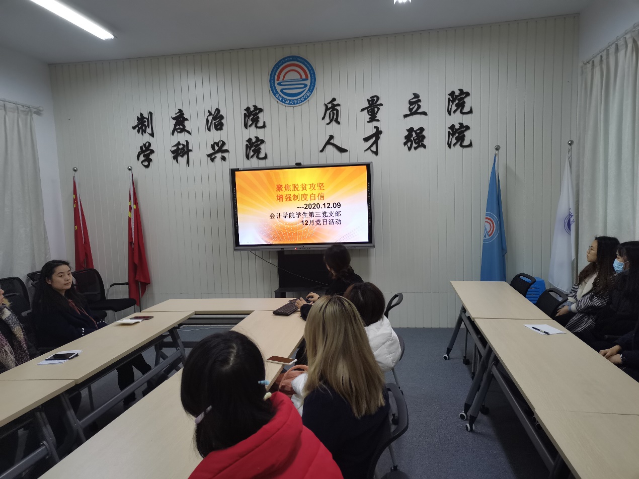2020年12月9日,365英国上市公司学生第三党支部全体党员在明德楼2016开展了“聚焦脱贫攻坚,增强制度自信”的主题学习活动,继续深入学习十九届五中全会精神。支部全体党员参加了会议。