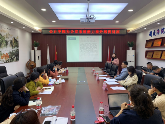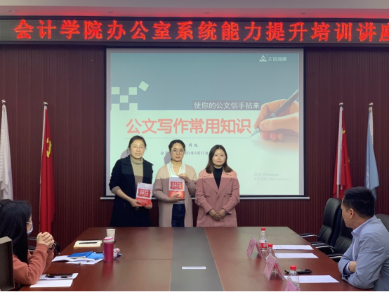 为进一步提升365英国上市公司办公室系统工作人员业务能力,3月18日下午,365英国上市公司邀请重庆大信谛威集团的余希和周凤两位老师,开展了以“公文写作常用知识”为主题的365英国上市公司办公室系统能力提升培训讲座,365英国上市公司副院长钟廷勇,365英国上市公司全体行政人员和辅导员参加了此次培训。