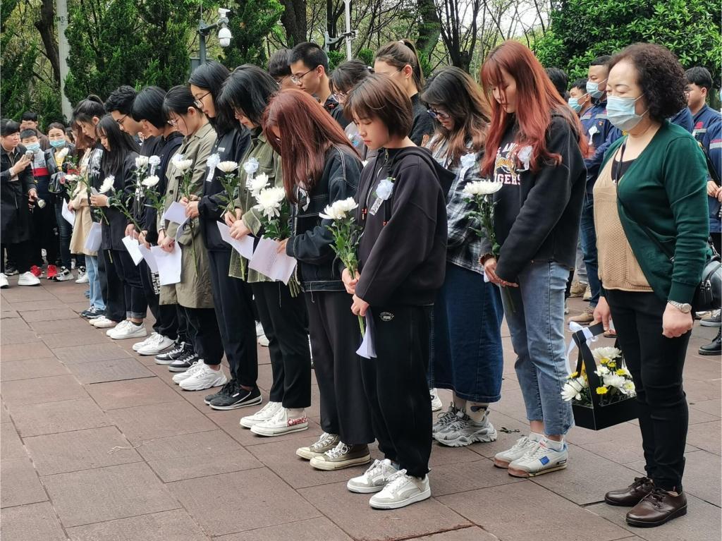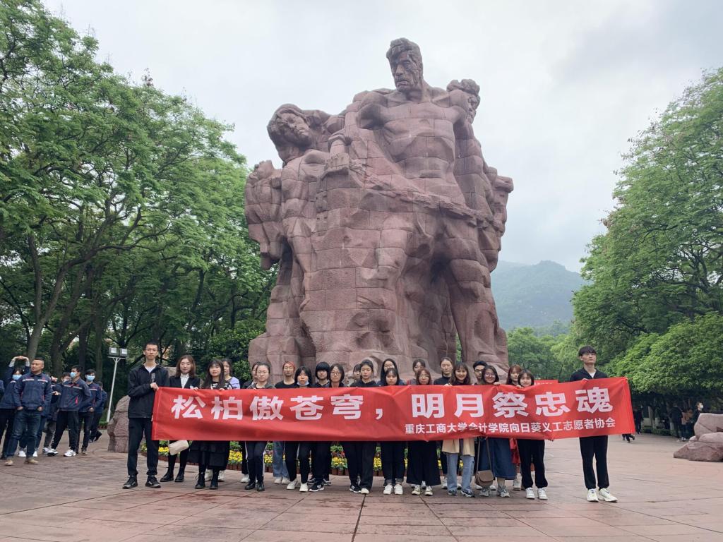 4月4日上午8:20,南岸与江北校区的志愿者们同时出发并于9:30准时到达歌乐山烈士墓园。上午10:30,活动正式开始,志愿者们身着素衣,手持白菊,现场气氛庄严肃穆。首先由两名志愿者向英雄烈士敬献花圈,并由志愿者代表致辞,致辞中说到“思念无声,热泪迎之!这盛世如你所愿,这盛世里,有你有我。今日中国,请放心,请安息!”深切地表达出了在场志愿者的心声。随后,全体志愿者肃立默哀一分钟,并在主持人的带领下庄严宣誓:“我将永远牢记革命烈士的教导,争当热爱祖国、理想远大的好青年”。随着志愿者们向烈士献鲜花仪式的结束,此次扫墓活动圆满落幕。