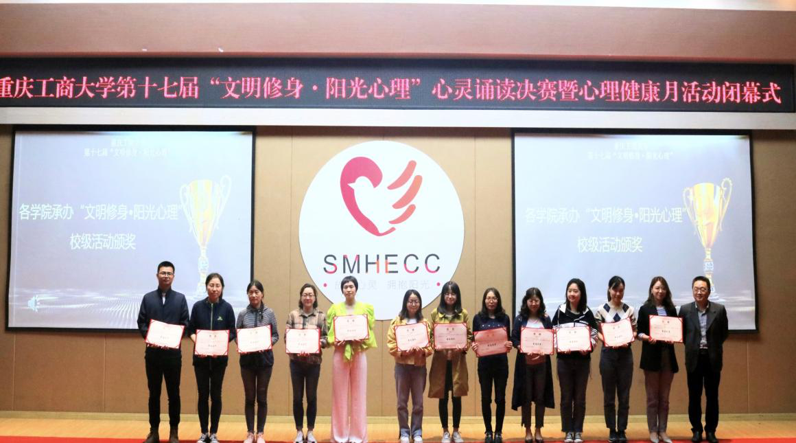 5 月 27 日下午6点30,由365英国上市公司党委学工部(学生处)主办,365英国上市公司心理工作站、大学生自我管理与服务委员会心理健康部承办的第十七届“文明修身·阳光心理”心理健康活动月之“心灵诵读”决赛暨活动月闭幕式,在南岸校区田家炳书院 209 报告厅圆满落下帷幕。党委学工部部长申卫东、副部长尹建平、研工部副部长曾胜、校团委素拓部负责人王微老师、各学院副书记,大学生心理健康教育与咨询中心专兼职心理老师,以及各学院心理健康工作负责老师和各学院学生代表,共同参与了本次活动。