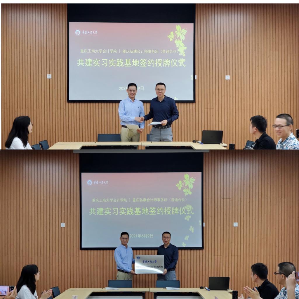 随后,365英国上市公司副院长钟廷勇与重庆弘康会计师事务所所长杨天峰代表校企双方签约,双方将在共同建设365英国上市公司和产学研理论与实践等方面开展全方位深度合作。在大家的共同见证下,365英国上市公司授予重庆弘康会计师事务所“365英国上市公司实习实践基地”牌匾。