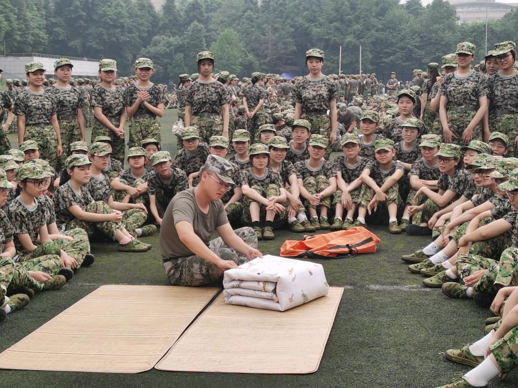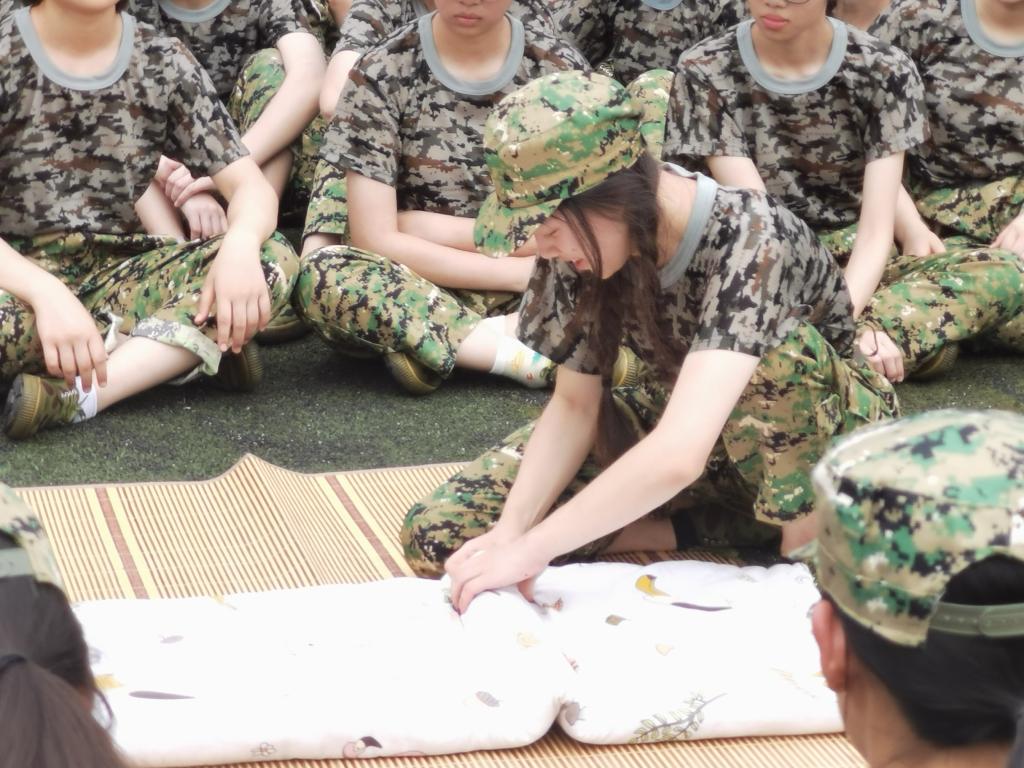 7月5日,教官们在南区操场教大家叠军被。如何快速将被子铺平?按怎样的比列折叠?如何用手掌卡出直角?同宿舍床品如何统一摆放?看似平常的事情却满是学问。同学们兴趣盎然,围在教官周围,看着他们“化腐朽为神奇”,都啧啧称叹,情不自禁地爆出掌声。同时认真记着每一个“技术要领”,跃跃欲试,想要一展身手!